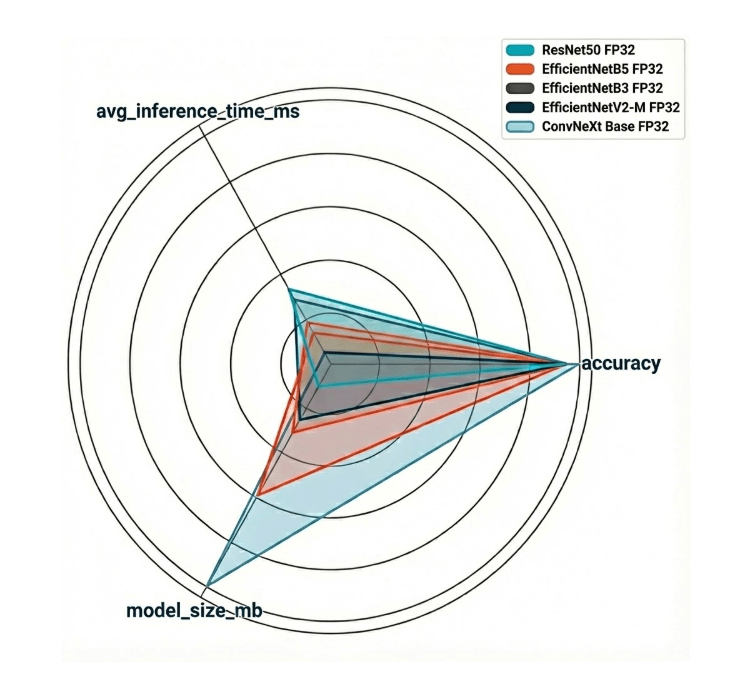 - Vision Transformers/ConvNeXt: Strong at scale but demand higher resolution and compute, exhibit more brittle quantization on small devices, and have less predictable latency for real-time applications.