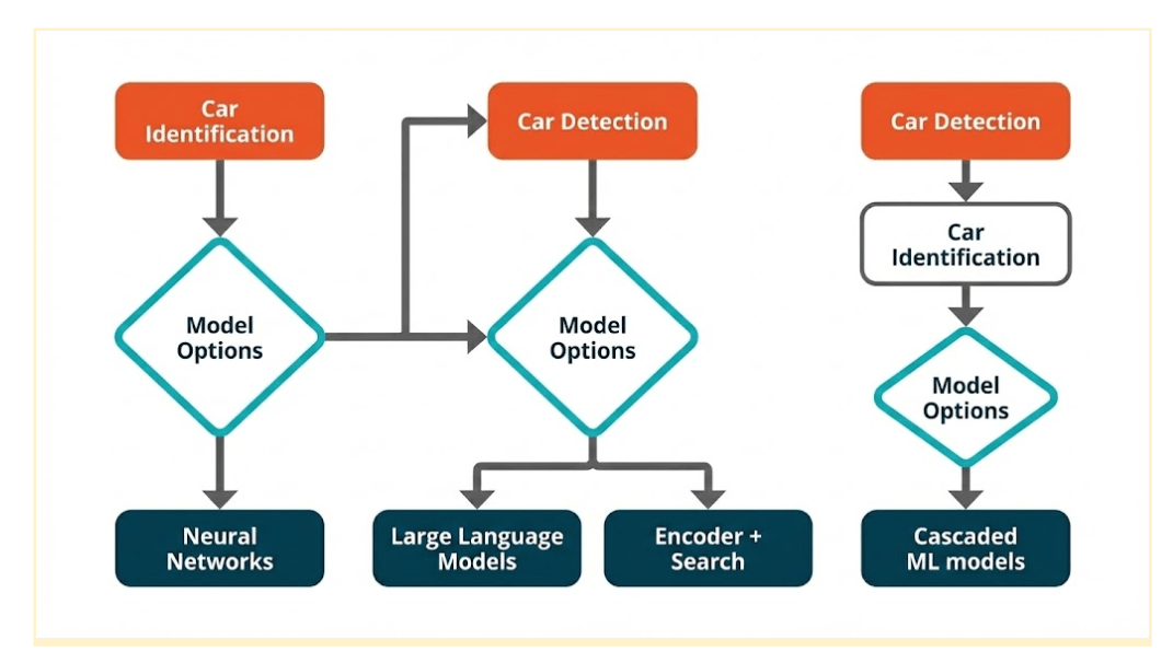 - Granularity gap: Many models stop at coarse categories (“car,” “SUV”). Business logic typically requires fine-grained labels (make → model → year/trim), which generic classifiers do not provide reliably.