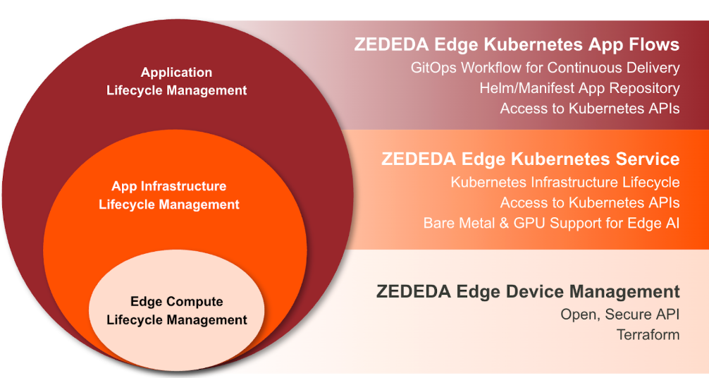 ZEDEDA Edge Kubernetes App Flows takes an edge-native perspective, unifying the three crucial layers of the edge compute stack into a single solution for seamless, secure lifecycle management.
