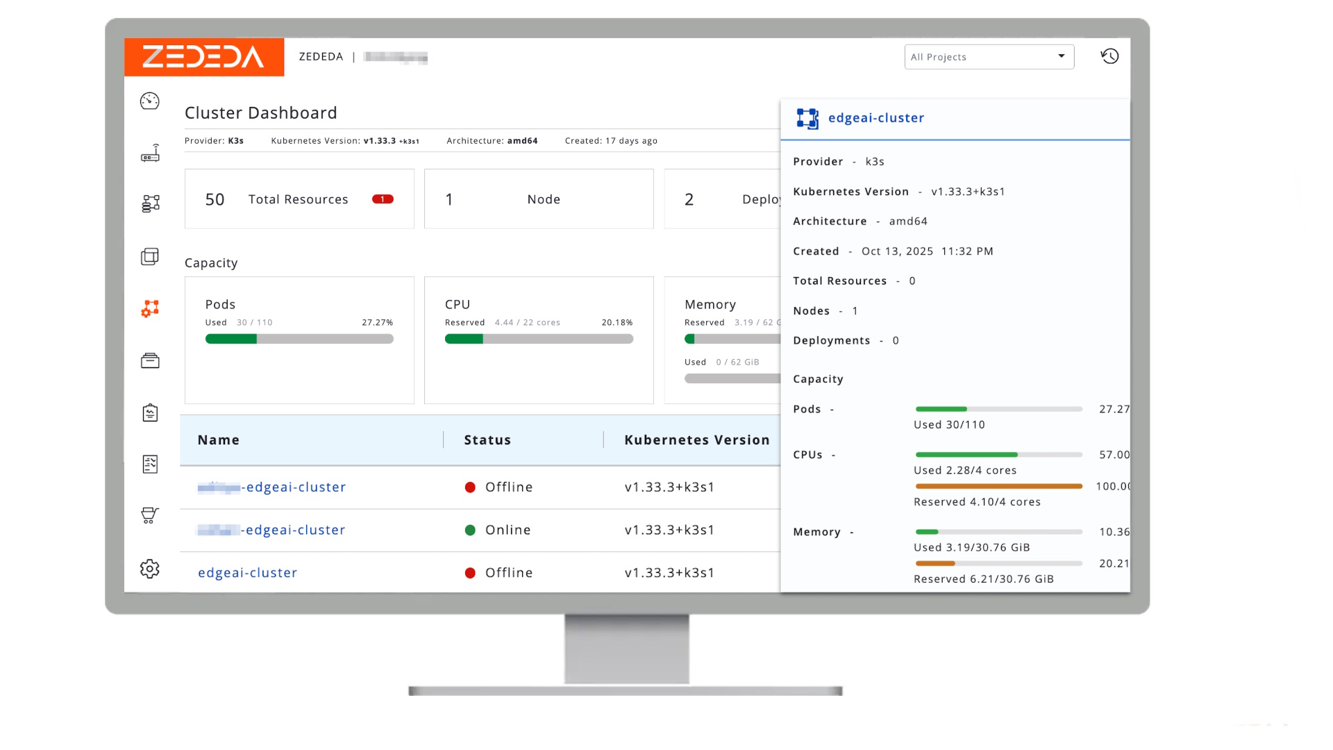 ZEDEDA Edge Kubernetes Service handles the Kubernetes cluster lifecycle itself, providing:
